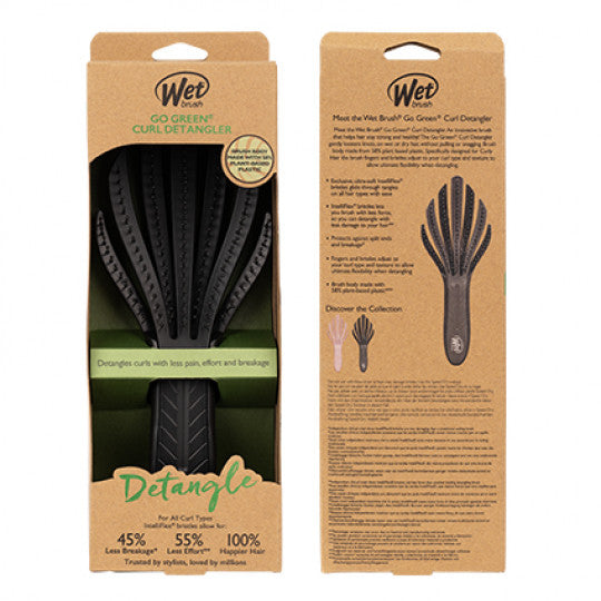 The Wet Brush Go Green Curl Detangler Black is a sustainable, salon-quality brush designed specifically for curly, coily, and textured hair. Crafted from plant-based plastic, this brush combines environmental responsibility with advanced detangling technology. Its IntelliFlex® bristles gently glide through curls without pulling, tugging, or disrupting your natural pattern—making detangling effortless and pain-free. The flexible bristle layout helps preserve curl definition while minimizing frizz and breakage. With a sleek matte black finish and ergonomic grip, it’s the perfect tool for curl care that’s both stylish and sustainable.